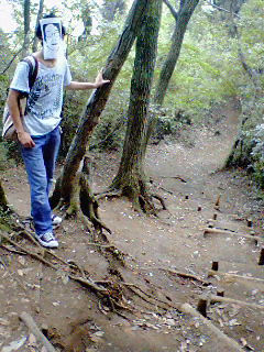 本当に中々の山道。そういえば、ハイキングコースに入っていったマラソン集団はどこにいったんだろう。